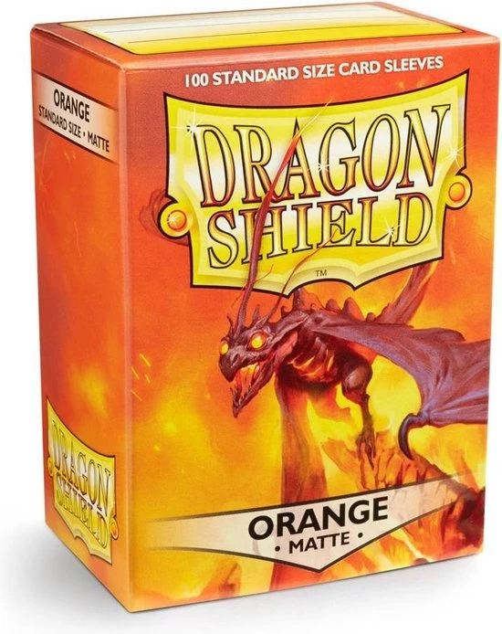 Clear front & Orange back. Light a spark and set fire to the game.Matte sleeves are our popular line of textured Dragon Shield with superior handling. A perfect mix of durability and shuffle-ability. 100 sleeves per box. For cards measuring up to 63??88 mm???s (2?????x3?????). PVC-free polypropylene sleeves, no acid.??Archival safe. 120 ?? quality thickness. Sturdy cardboard box fits 75+ cards including sleeves. Box lid has a label for your personal use. Designed for use with Magic the Gathering???, Pok??mon??? and other card games. ???Magic: The Gathering?????? is a registered trademark of Wizards of the Coast,?????Pok??mon?????? is a registered trademark of Nintendo Co., Ltd.