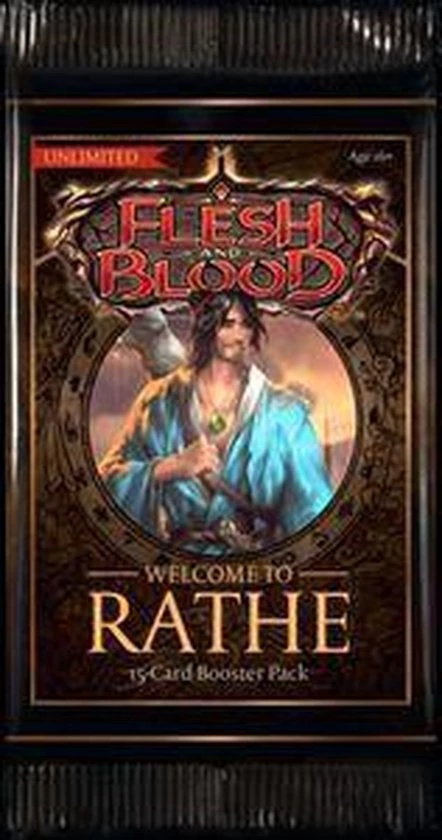 Een Flesh And Blood TCG: Welcome to Rathe Unlimited Booster biedt 16 kaarten.