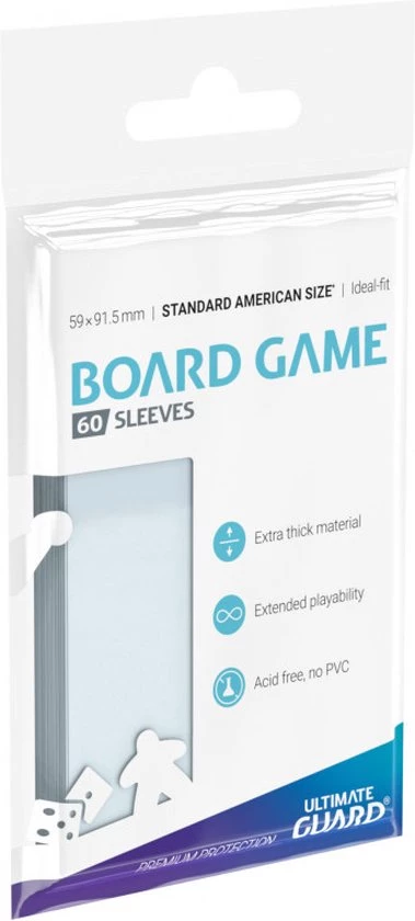 Premium Boardgame Sleeves grootte ‘Standard American Board Game’. (59×91,5mm). 60 stuks per pakje.