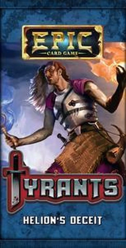 Epic Card Game: Tyrants is an expansion for the Epic Card Game that’s packaged in four non-random booster packs (Draka’s Rage, Markus’ Command, Helion’s Deceit, and Raxxa’s Revenge), with each booster pack containing twelve new game cards and a double-sided token.
