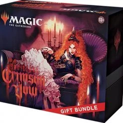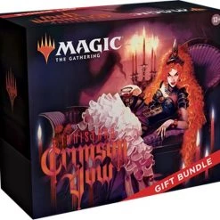 Magic The Gathering: Crimson Vow Gift Bundle contains everything you can find in the standard Bundle, plus an Crimson Vow Collector Booster! The Gift Bundle also contains a different oversized d20 than the standard Bundle—the dice are the same size, but different colors. In each Magic The Gathering: Crimson Vow Gift Bundle, you’ll find: